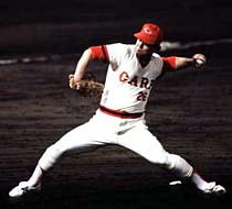 | 奪三振王 | 1968年、入団2年目にサンディー・コーファックスの記録を も上回るシーズン401奪三振というとんでもない世界記録 を作り上げた偉業を忘れることはできません。この記録は、 例えば昨年の奪三振王、ダルビッシュの記録は210です から驚きの記録です。この当時は三振をとるよりゴロを打た せる方が難しいと江夏は豪語していた。 |