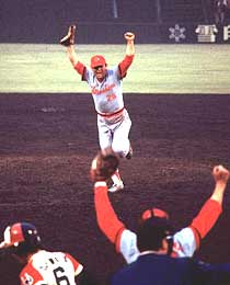 広島東洋カープを史上初のリーグ優勝に導いた 1979年、有名な「江夏の21球」の場面で、古葉 |